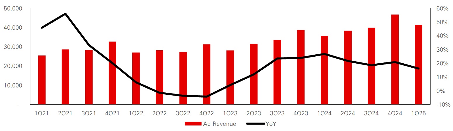 Figure 6: Meta’s advertising revenue and y-o-y growth (USDm)