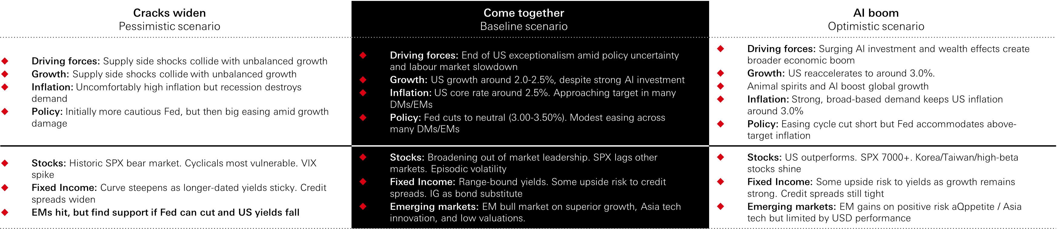 Across all scenarios, the global economy is becoming more multi-speed and less synchronised, with outcomes increasingly shaped by energy exposure, policy flexibility and the ability of firms and economies to sustain earnings in a less benign environment.