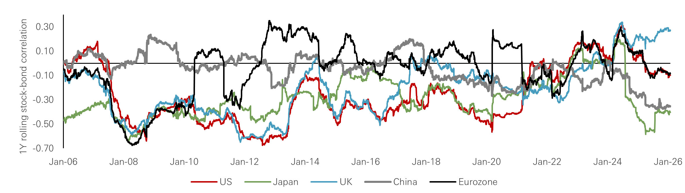In fixed income, the current environment reinforces the need to reassess traditional roles. The re-emergence of positive stock–bond correlation, as seen in recent weeks, highlights the limitations of duration as a reliable hedge in supply-driven inflation shocks.