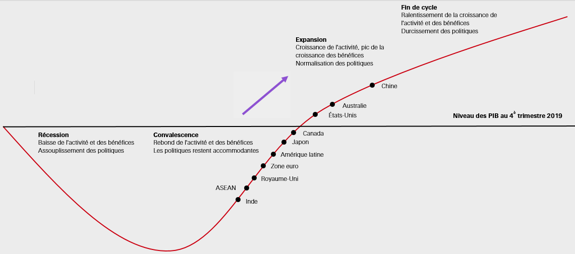 Le cycle économique évolue rapidement, mais tout porte à croire que nous entrons maintenant dans une phase d'expansion de milieu de cycle. Dans le cadre de cette tendance, on observe quelques divergences importantes entre régions.