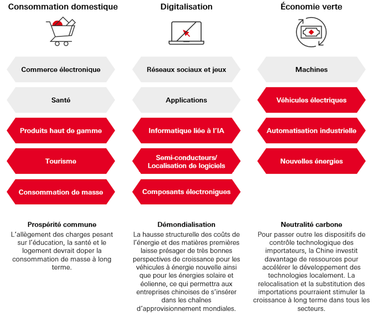 Les bénéfices des entreprises montrent des signes de stabilisation après trois ans et demi de révisions à la baisse. L'amélioration structurelle du rendement des fonds propres (ROE) des actions chinoises, le soutien des politiques gouvernementales et l'émergence de nouveaux leaders technologiques devraient aider à fournir une protection contre les éventuels chocs macroéconomiques.